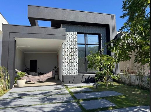 Fachada moderna com elemento arquitetônico em 3D