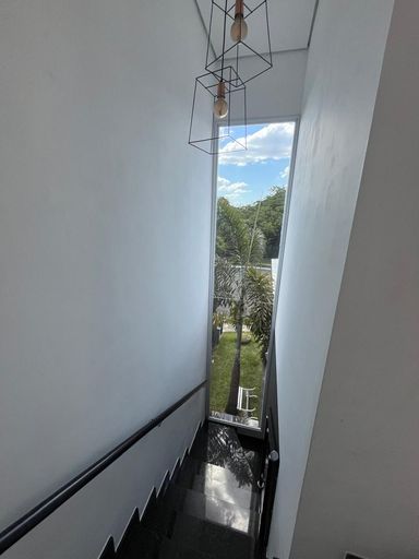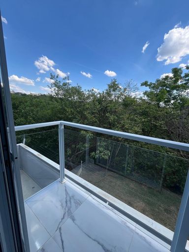 Rua tranquila, sem saída, sem vizinho de um lado, envolta a área verde.