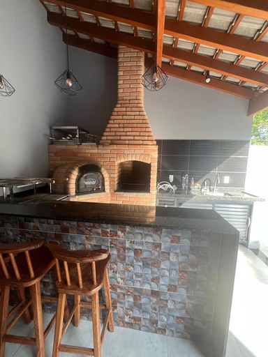 Área Gourmet planejada com churrasqueira e forno a lenha