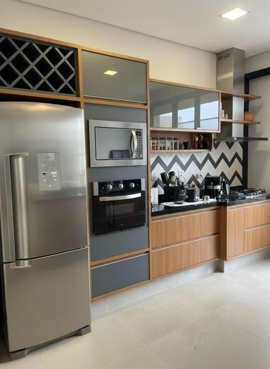 ✅ Cozinha Completa: Ambientes com móveis planejados de alto padrão e já equipada com cooktop, exaustor, forno elétrico e micro-ondas.