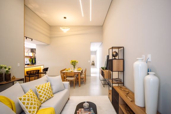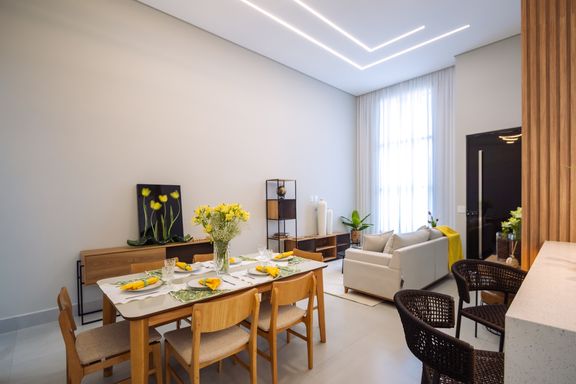 sala de jantar e sala de estar com pé direito de 5 metros,
