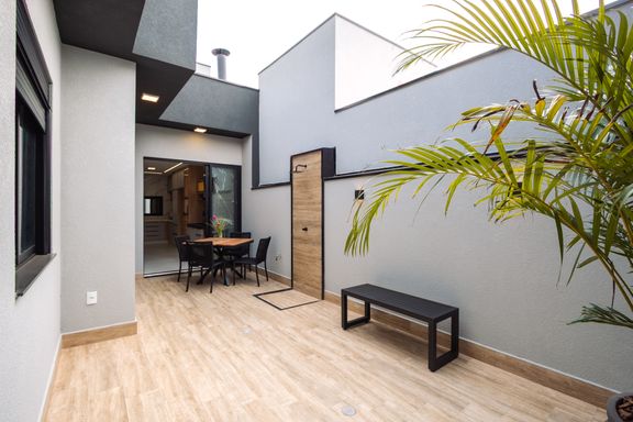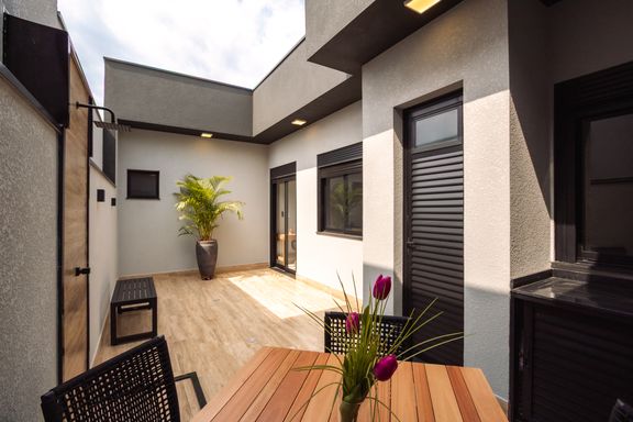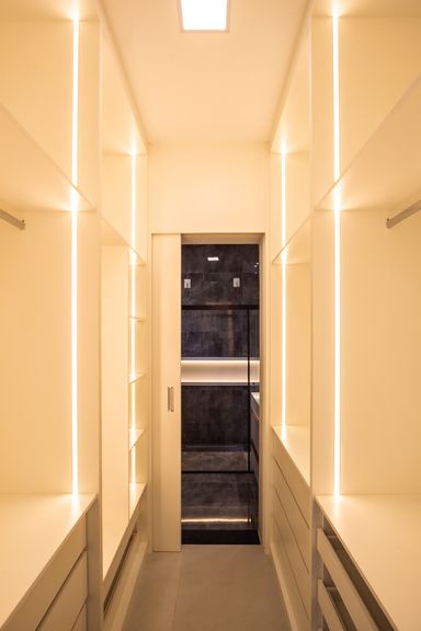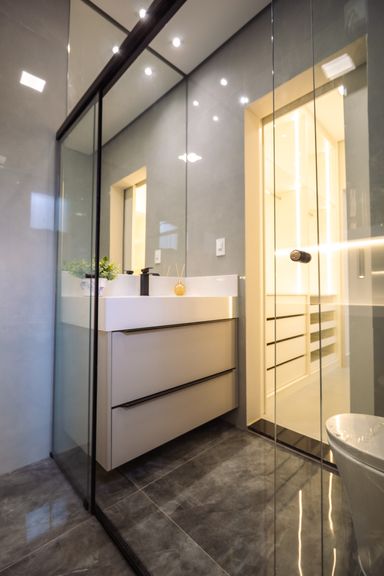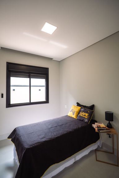Esquadrias pretas, Janelas e portas automatizadas em todos quartos;