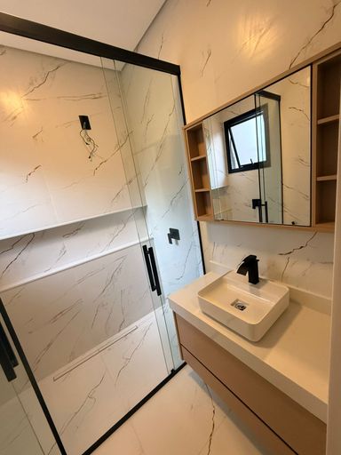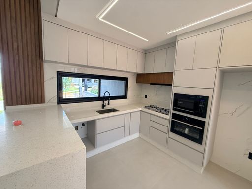 - Cozinha com armários, já equipada com cooktop, forno elétrico, microondas e sugar;