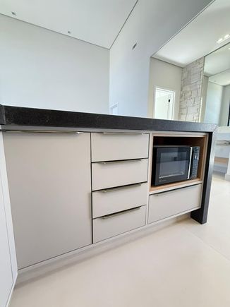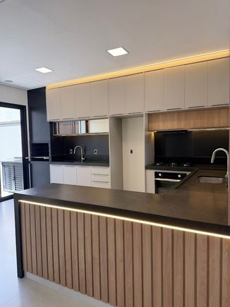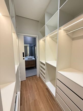 Móveis planejados nos banheiros, closet, cozinha/gourmet, lavanderia e conta com espelhos e box nos banheiros.