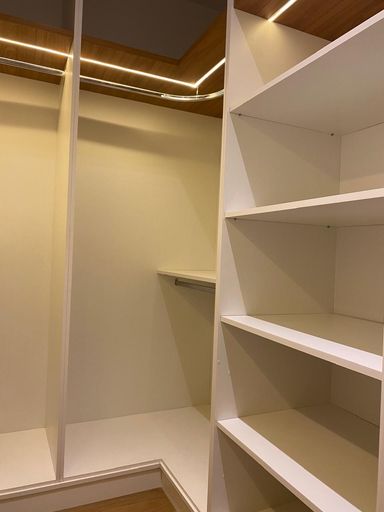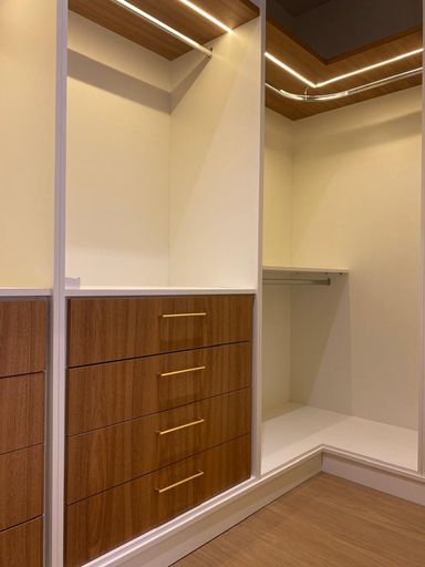 Gabinetes nos banheiros, boxes, closet montado e planejados na cozinha, além de cooktop e coifa.