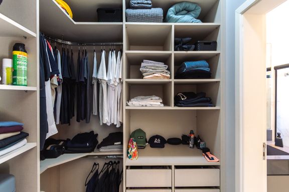 A garagem coberta comporta 2 carros, mais 2 descobertos, e ainda possui um armário para organização extra.