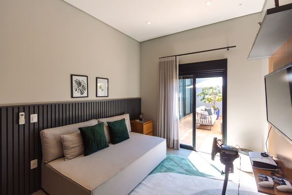 Com 3 suítes amplas, todas com closet e ar condicionado para o seu conforto. Portas balcão automatizadas trazendo modernidade e praticidade para o seu dia a dia. A sala de 2 ambientes possui um pé direito alto, proporcionando uma sensação de amplitude e sofisticação.