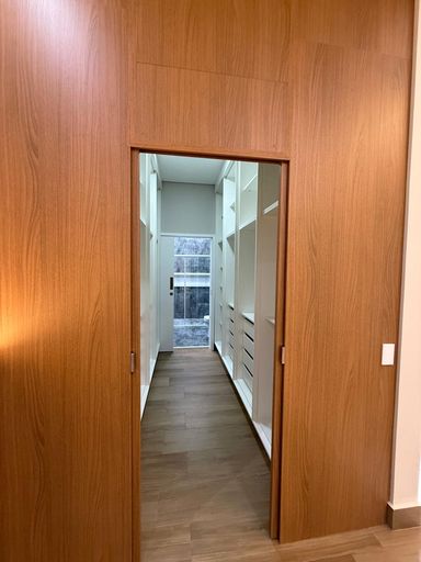* Esquadrias de alumínio preto e persianas automatizadas.