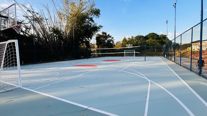 2. Clube com piscina, Lago para pesca, Quadra poliesportiva, Academia, Salão de Festas, Brinquedoteca, Playground, Quadra de Tenis, Churrasqueira, Beach Tênnis, Espaço Pet e Campo de Futebol Society